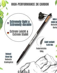 Premium Nordic Walking Poles | Adjustable, Ultralight 6.7 Ounces, 25″-53″ Telescopic Twist Pole, 100% Carbon | Trekking Poles, Hiking Poles, Walking Sticks for Women & Men